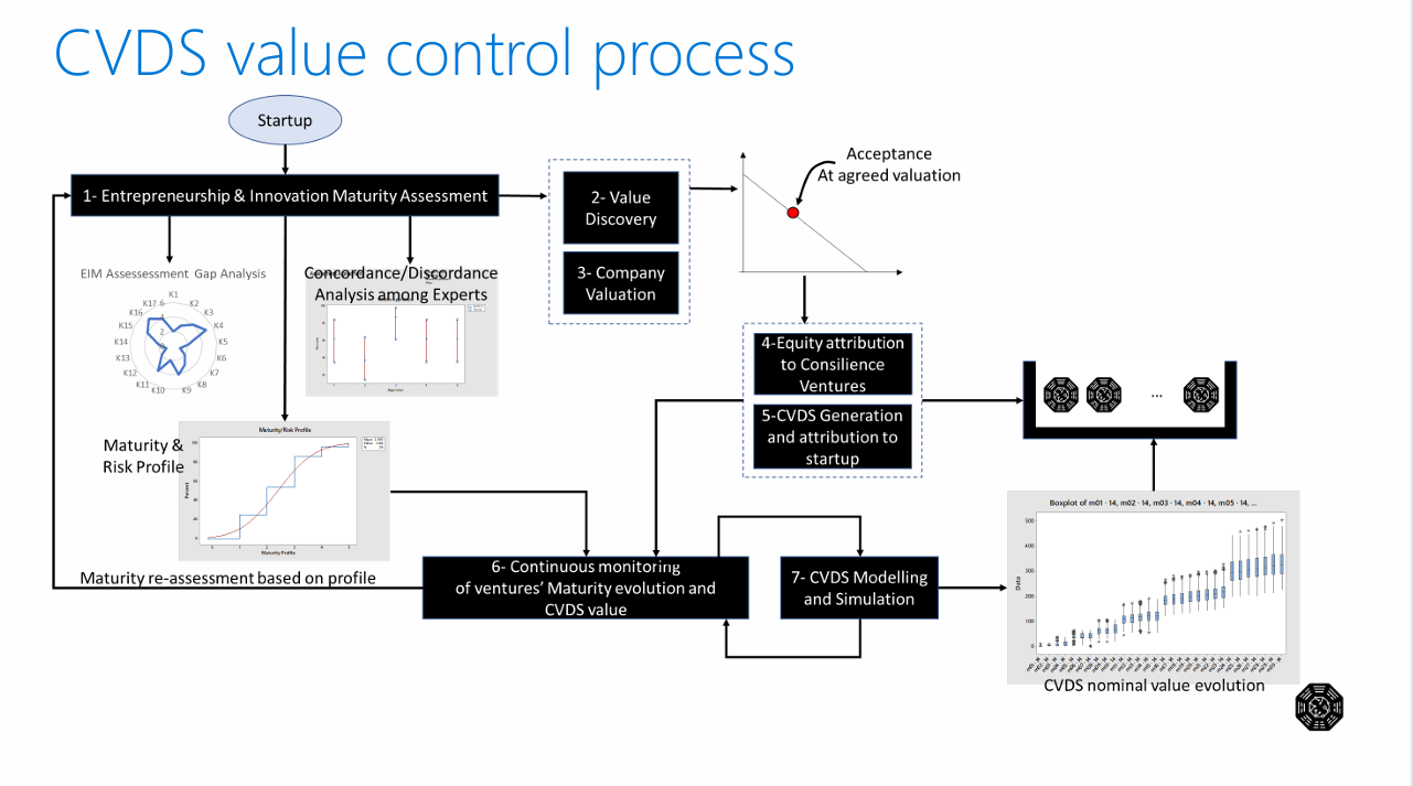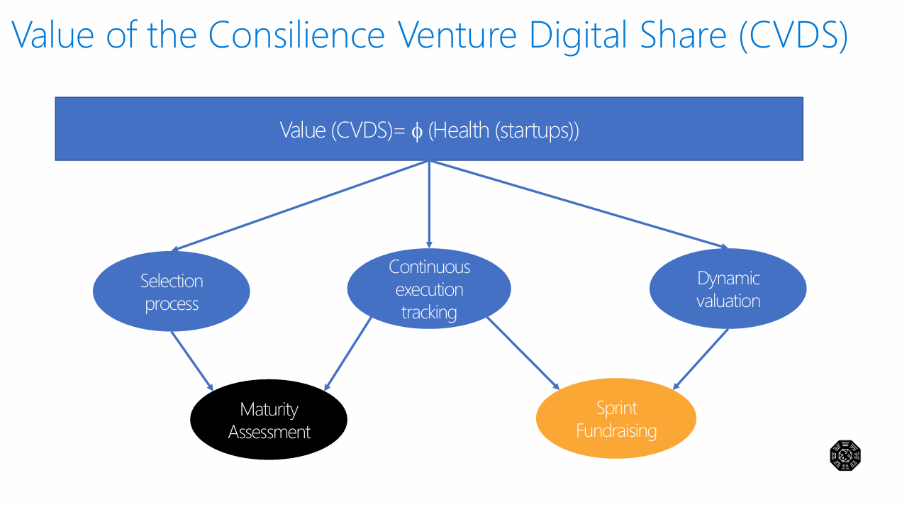 This analysis examines the theoretical framework and methodological approach underlying the Consilience Ventures Digital Share (CVDS) valuation system, a multi-dimensional model designed to assess and optimize value creation within startup ecosystems. The framework integrates maturity assessment, dynamic valuation mechanisms, and systematic execution tracking to create a comprehensive venture evaluation paradigm.
